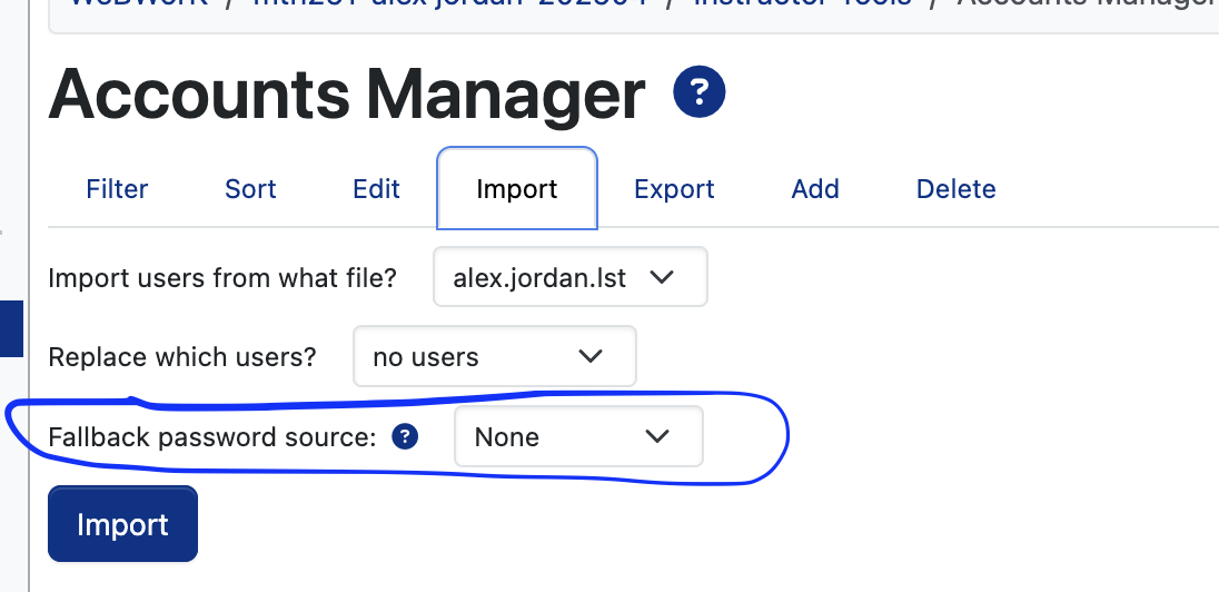 For future reference, just a note about an issue I encountered when I did a fresh install of WW 2.20 from the Ubuntu 24.04 ova. (I was previously on 2.18.) When I created student accounts using a classlist file, passwords were not created from the student_id field, as I had come to expect from previous WW installs. I traced this back to a reference to $fallback_password_source in defaults.config and localOverrides.conf: